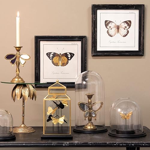 HAES DECO - Cloche en Verre avec Socle en Bois Noir - Diamètre 17 cm et Hauteur 35 cm - Cloche en Verre Décorative Transparente avec Plateau en Bois - ST034731
