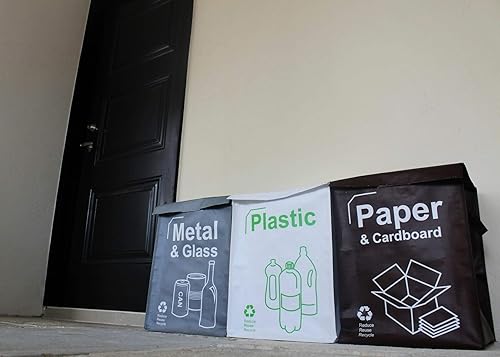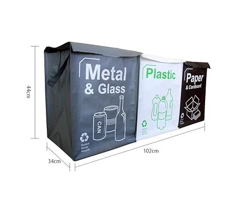 Immaculate Textiles Lot de 3 sacs de recyclage de qualité supérieure - 180 g/m² - 34 x 34 x 44 cm - 50 l : plastique, verre, métal, papier, carton