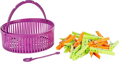 Axentia 133358 Panier à échelons télescopique, Panier à Chevilles en Plastique avec poignée et Crochet, Panier à 25 échelons, env. Ø 19 x 12 cm, Multicolore