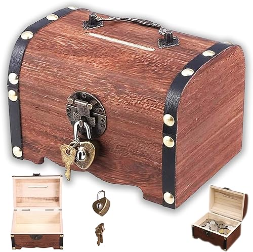 Jiavlyx Coffre Au Trésor En Bois Vintage, 14.5*10*9.5cm Coffre Au Trésor En Bois Avec Serrure, Rangement En Bois Petit Coffre, Vintage Mini Coffre Tresor, Pour Stockage, Décoration