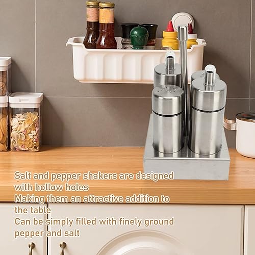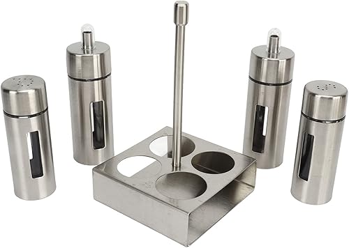 Ensemble de Bouteilles D'Huile et de Vinaigre, Sel, Poivre, Huile et Sel en Acier Inoxydable, Bouteille de Vinaigre, Poivrière avec Support de Base, pour Cuisine, Restaurant