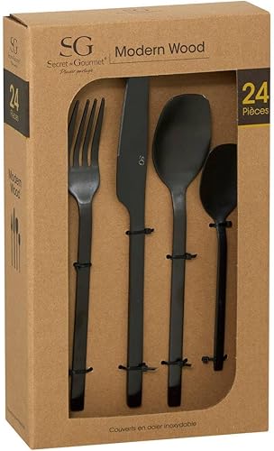 Secret de Gourmet - Ménagère 24 pièces Modern Wood Couverts en INOX