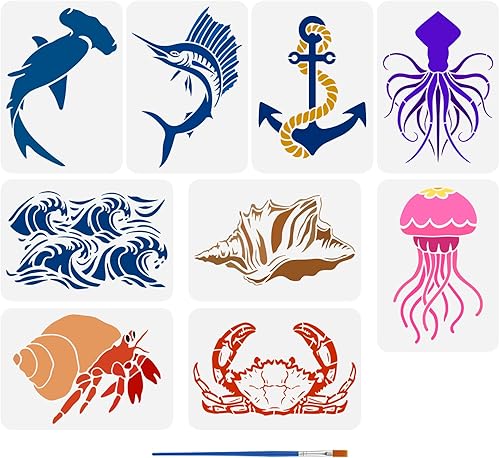 FINGERINSPIRE 9Pcs Pochoir de Peinture Banksy Avec Pinceau 21x29.7cm Lunettes de Soleil Rat Graffiti Garçon Singe Fast Food Attraper Livres Jeu Modèle de Dessin Grands Rêves Femme Qui Crie Pochoir DIY
