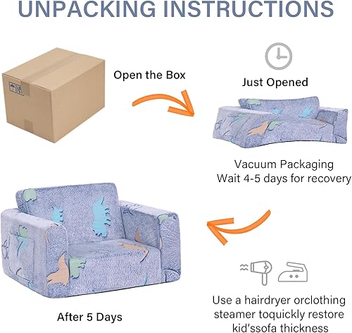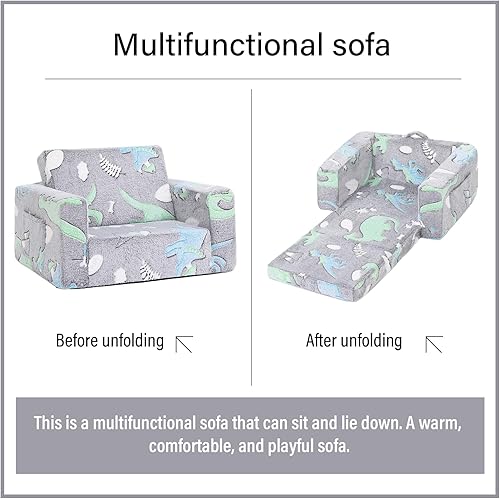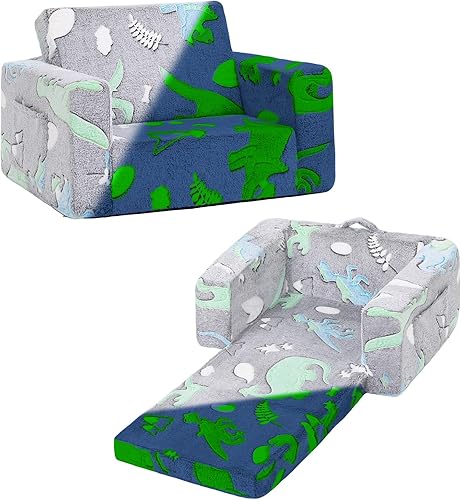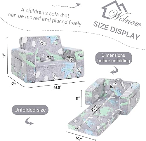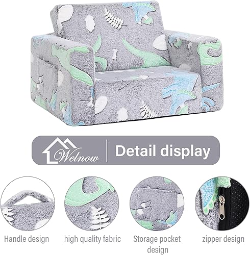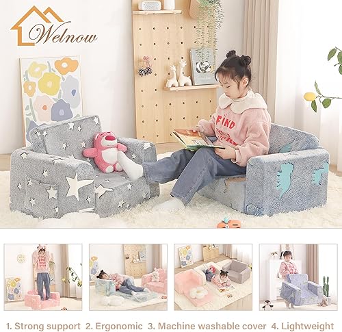 Welnow Canapé 2 en 1 pour enfants, chaise convertible phosphorescente pour tout-petit, fauteuil pliable pour enfants, canapé de jeu pour enfants avec poches latérales et housse amovible pour fille ou
