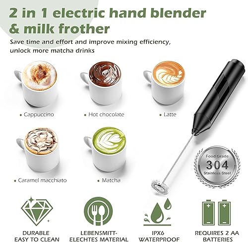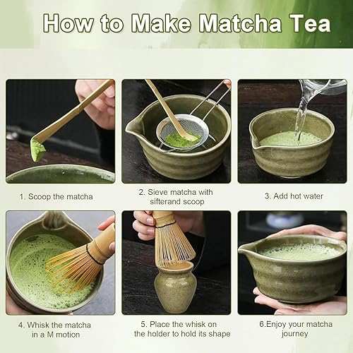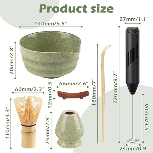 Ensemble à matcha avec mousseur à lait portable, kit de 6 pièces comprenant une cuillère en bambou, un bol à matcha, un support de fouet, un fouet à matcha, un repose-cuillère, un service à thé