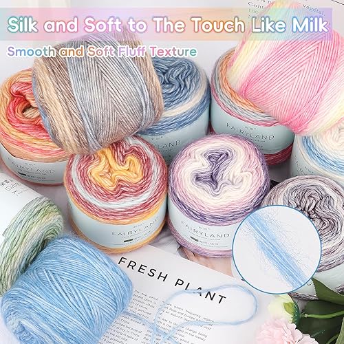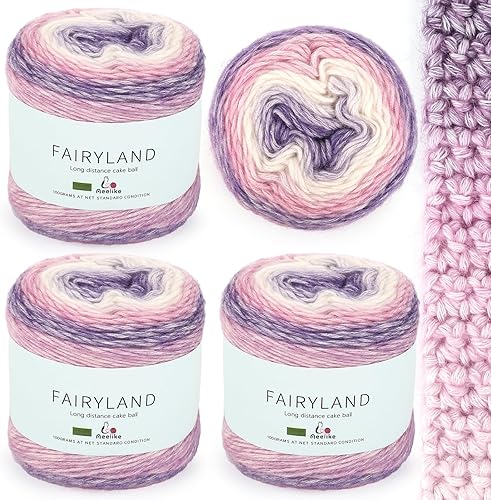 Aeelike 400 g (4 x 100 g) de fil à crochet en coton pour tricot - Kit Amigurumi durable 100 % polyacrylique - Ligne de gâteau avec dégradé de couleur violet - 1160