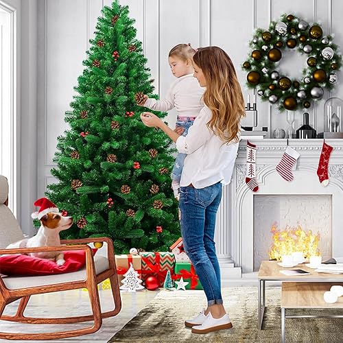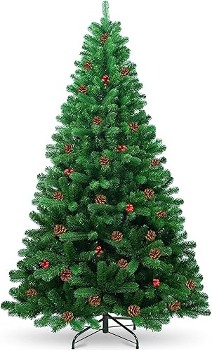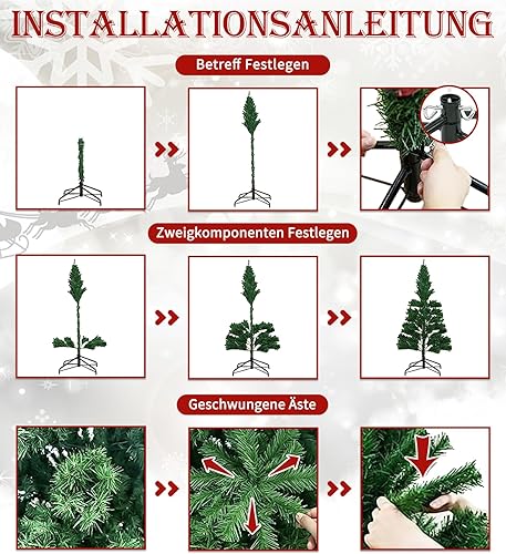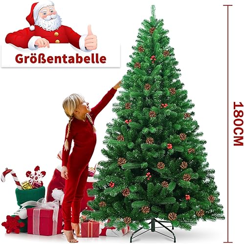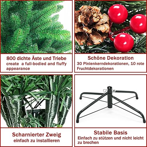 Sapin de Noël Artificiel 180cm Arbre de Noel Sapin Artificiel pour Décoration Noël Arbre de Noel Compris 800 Branches avec Support métallique avec décorations d'arbre de Noël à la Main