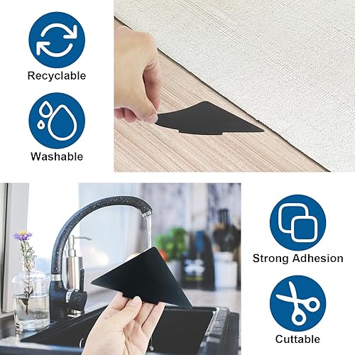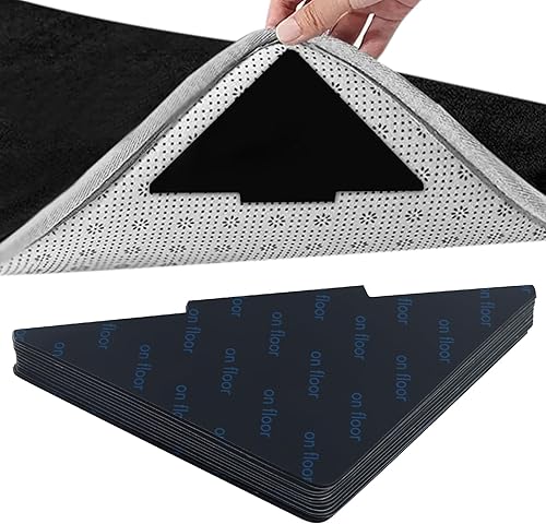 Lot de 22 tapis antidérapants noirs pour tapis, lavables et réutilisables, patins antidérapants triangulaires pour sols en bois dur, tapis et tapis