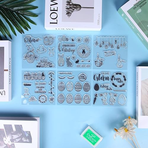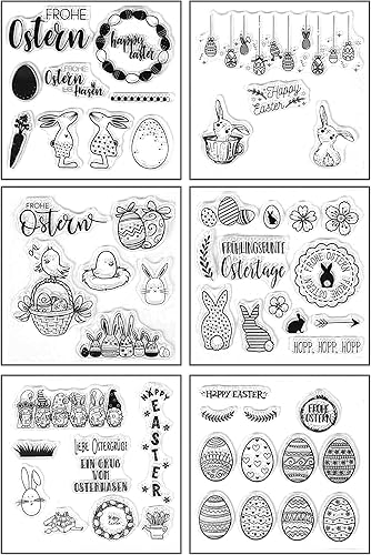 Lot de 6 tampons en silicone pour Pâques - Transparent - Pour Pâques - Lapin - Œufs de Pâques - Tampon en silicone - Printemps - Pour bricolage, bullet journal, scrapbooking, album photo - Kit de