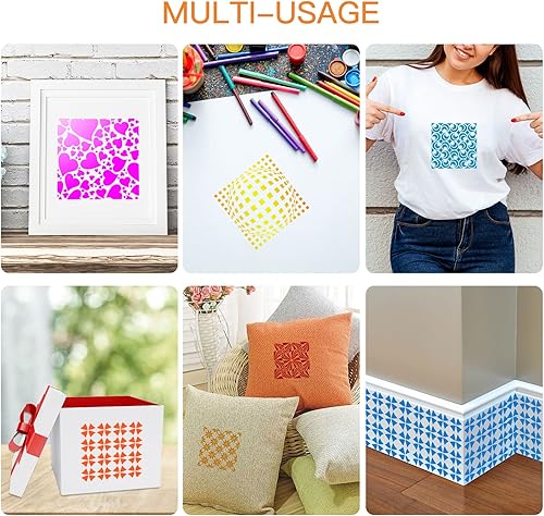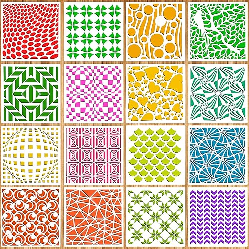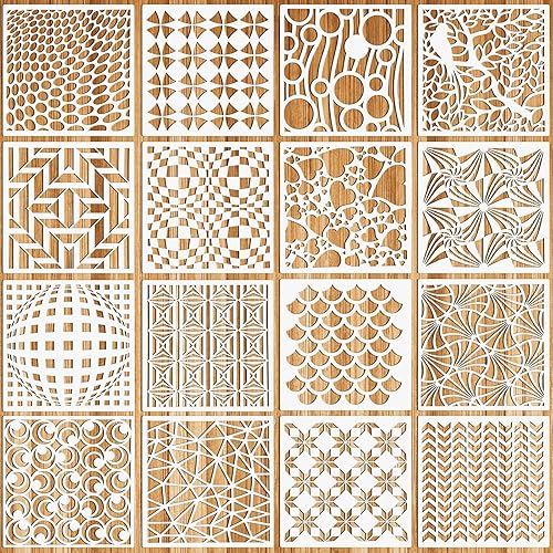 OOTSR 16 Pièces Pochoirs de Dessin de Peinture Meuble, 15x15cm Pochoirs de Peinture Géométriques Réutilisables Plastique, Modèle de Pochoir pour DIY Scrapbooking Bois Meubles Mur Maison Décor