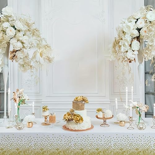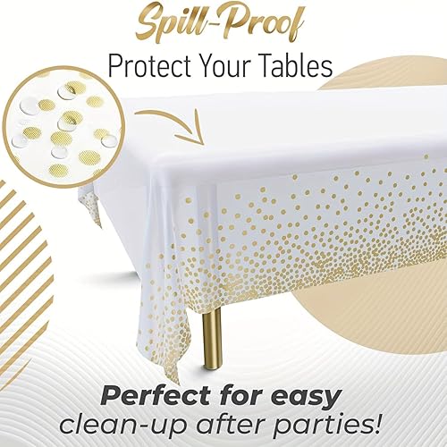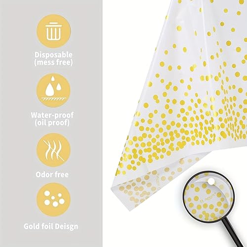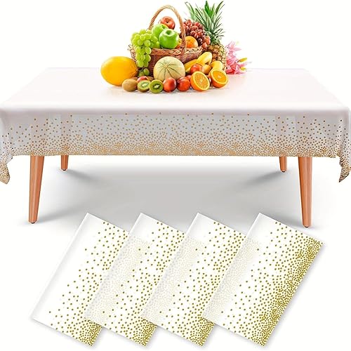 4 Pièces Nappes Jetables, Nappes Fête Rectangulaires à Pois Blancs et Dorés pour Mariages, Noël, Fêtes d'anniversaire, Pique Niques (137 x 274 cm)
