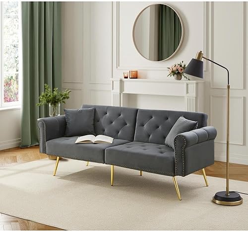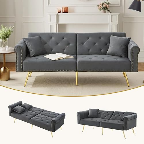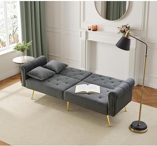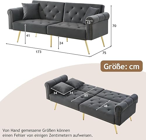 Zubaliya Canapé Convertible 2 Places avec Fonction Couchage,canapé 2 Places, Dossier réglable sur 3 Niveaux,Canapé lit réglable 2 en 1 avec revêtement en Velours,Bleu Vert Antique