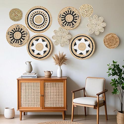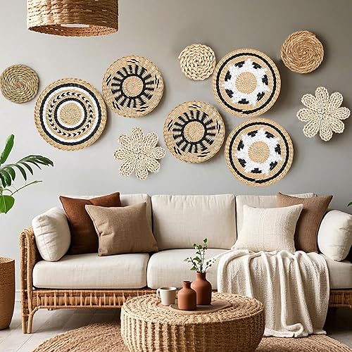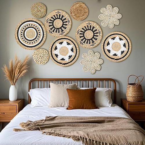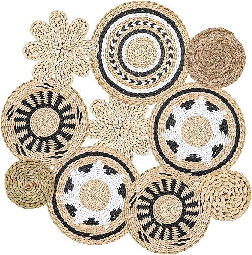 YiYa Lot De 10 Décoration Murale En Rotin Paniers Muraux À Suspendre En Rotin Paniers Muraux Boho Panier Mural Tissé À Suspendre pour Décoration Mural Maison Ferme Salon