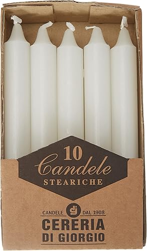 Cereria di Giorgio 407 bougies Steariques, cire, blanc, 1,8 x 1,8 x 15 cm, 10 unités