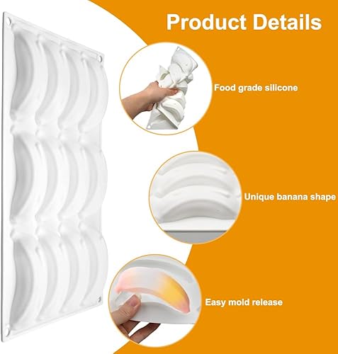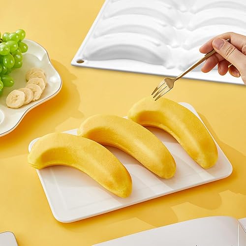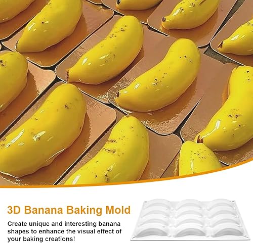Moule Silicone Patisserie Banane, Moule Trompe L'oeil Fruit Sans BPA, 3D Moule Entremet Silicone, Facile à Nettoyer, Anti-adhésif Moules à Chocolat pour Cuisson de Mousse, Gelée, Dessert (12 Cavités)