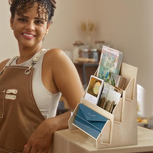 PH PandaHall 3 niveau Présentoir de Cartes de Vœux en Bois Support de Présentation pour Cartes Postales Présentoir de Comptoir pour Marque Pages Photo 25.8x24.5x34cm