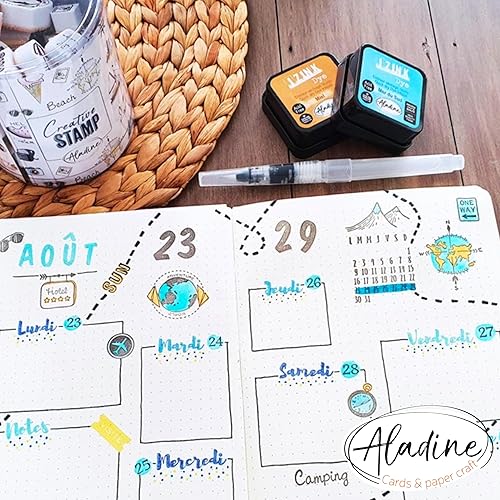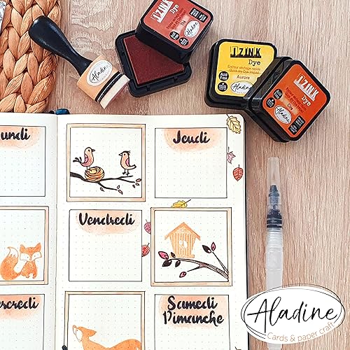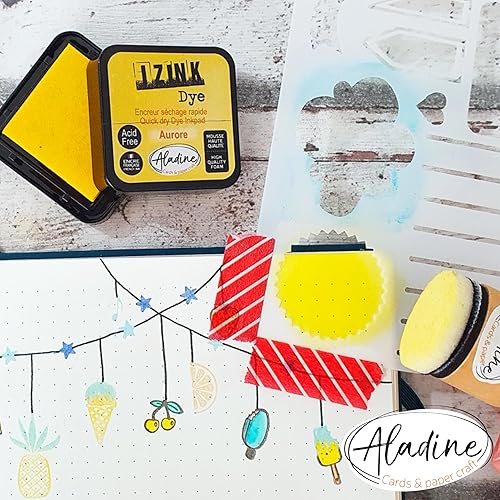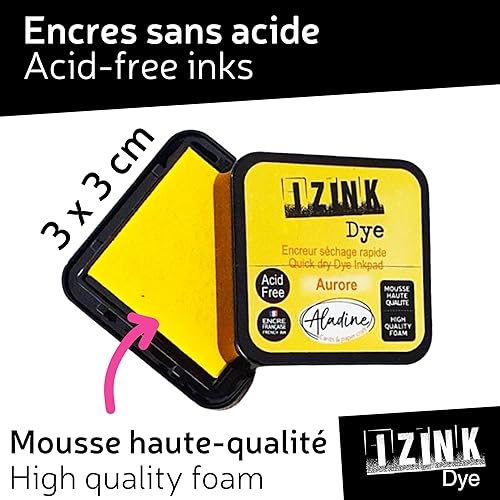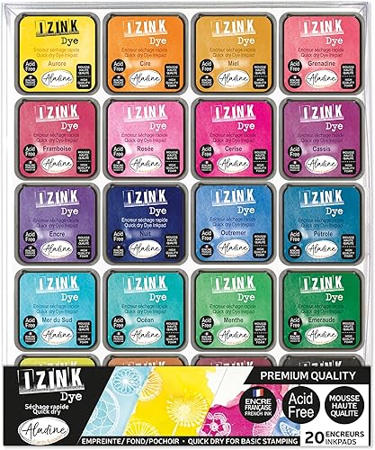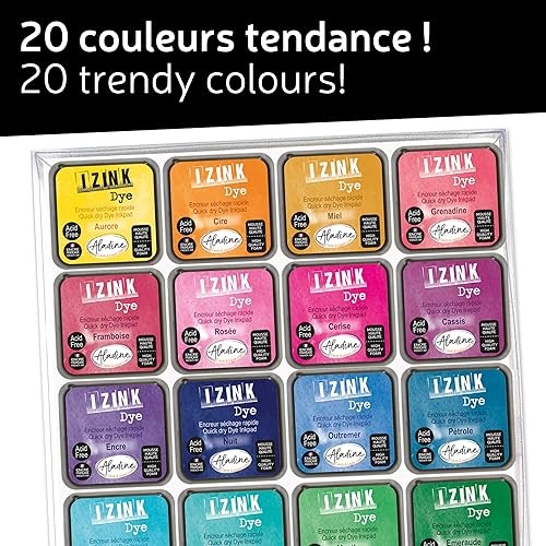 Aladine - Kit 20 Encreurs Izink Dye - Pour Scrapbooking, Carterie, Pochoirs, Loisirs Créatifs - Séchage Rapide - Encres Multicolores pour Tampons - 3 x 3 cm - Rose, Bleu, Vert, Jaune - 19703