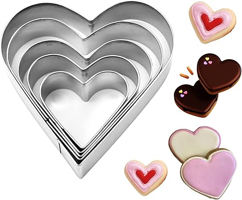 Lot de 5 Emporte Pièces en Forme de Cœur,Emporte Pièces en Acier Inoxydable Forme Cœur pour Gâteaux Mousse Biscuits Adaptées Décoration Noël D'anniversaires Pâques et Moments Amusants avec Enfants