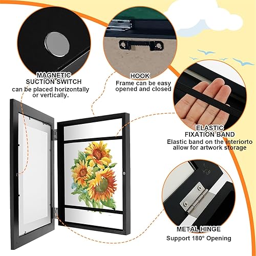 Cadre Dessin Enfant à Changer, Cadre Photo D'art pour Enfants, Cadre Ouverture Frontale A4 pour Stockage D'art Enfants, Cadre D'affichage D'œuvres D'art, Capacité 100 Œuvres D'art (1Pcs, Noir)