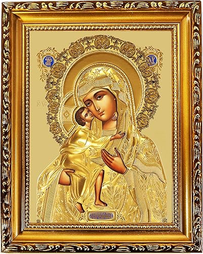 Icône catholique orthodoxe Madone et enfant, Vierge Marie Christ Jésus en or 24,5 cm, feuille d'or, cadeau religieux pour femme, homme