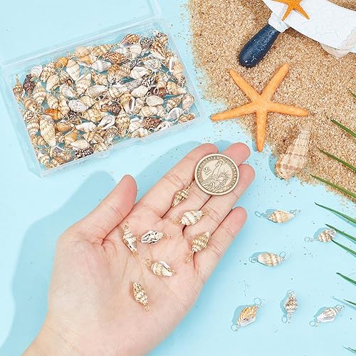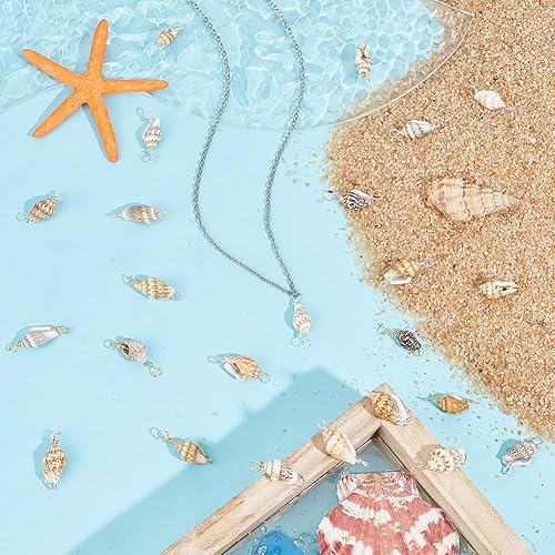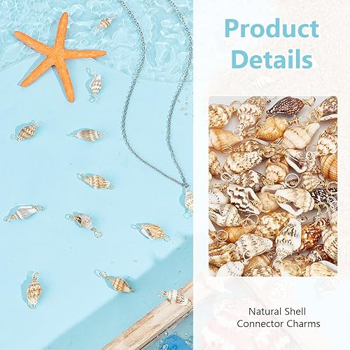 GOMAKERER 100 pièces Breloques de Connecteur de Coquille Naturelle, Pendentifs de Connecteur de Coquillage Non Teints Breloques de Coquille en Spirale avec 2 boucle pour la Fabrication de Bijoux
