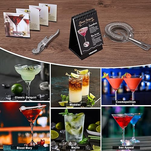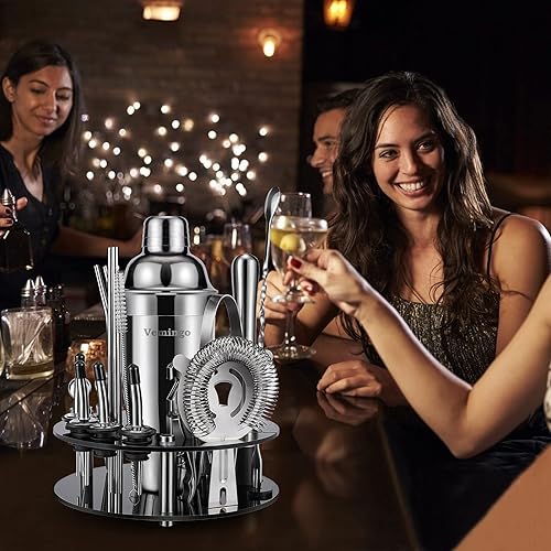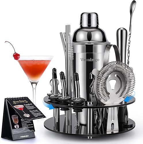Vemingo Shaker à Cocktail Acier Inoxydable | Ensemble Barman 20 Pièces | Grand Coffret Cadeau