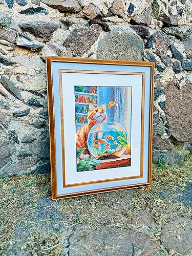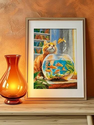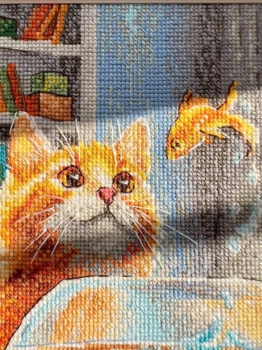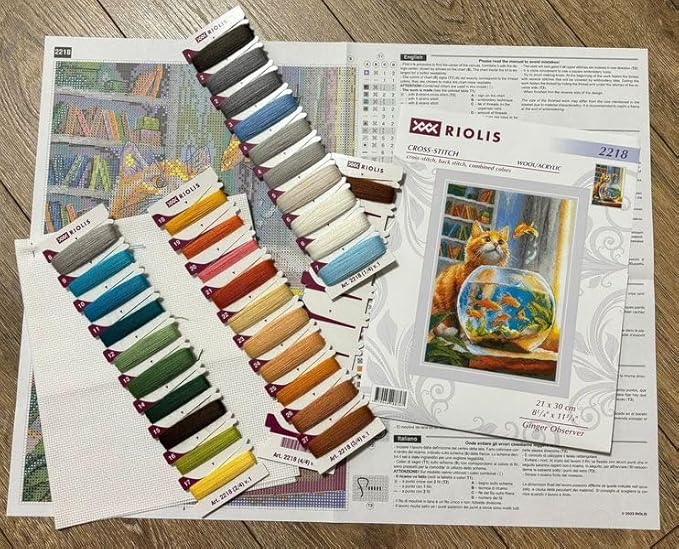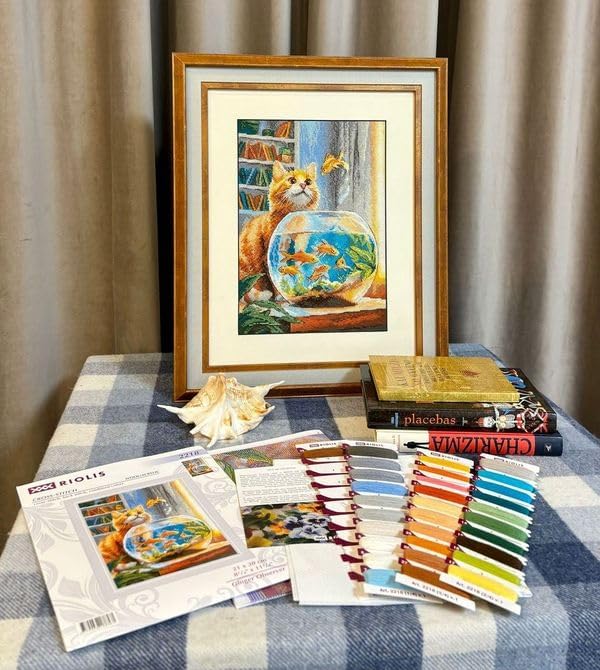 RIOLIS - Ginger Observer 2218, kits de point de croix pour les amateurs de chats 21,6 x 39,9 cm, kits de point de croix pour débutants et avancés, kits de point de croix pour adultes, kits de broderie