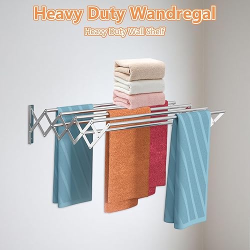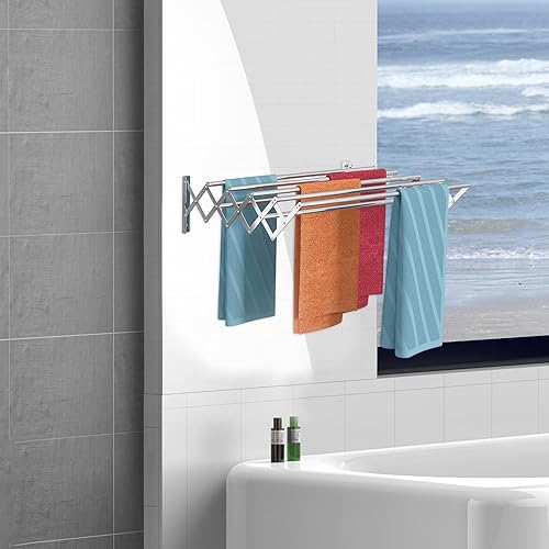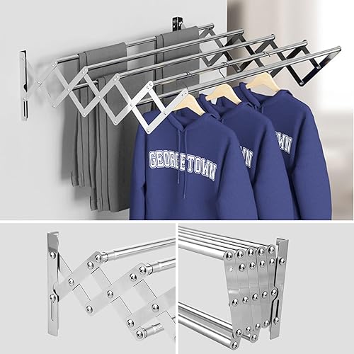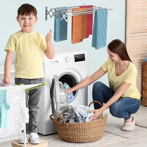 YOUNTHYE 1 étendoir à linge mural en acier inoxydable, extensible et pliable, extensible avec 7 barres pour buanderie, salle de bain