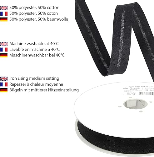 Les Petits Rubans Biais de Couture – 20 mm de large,plié 10 mm,rouleau de 25 m,50% coton 50% polyester,bordure pour couture,banderoles,tissus d'ameublement,meubles,passepoils,vêtements,couvertures