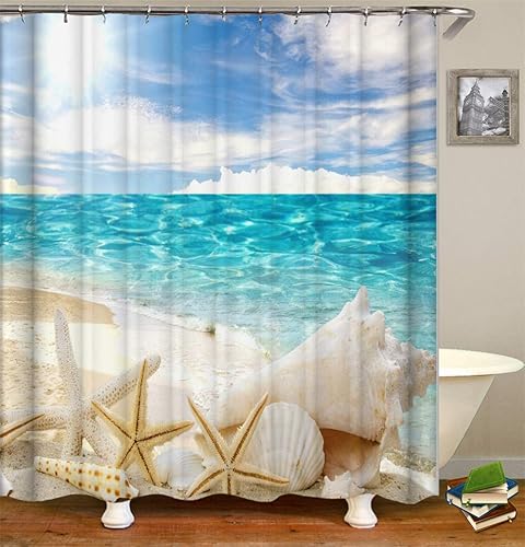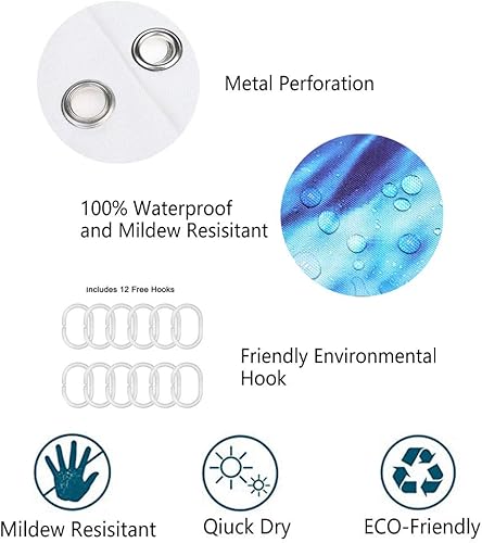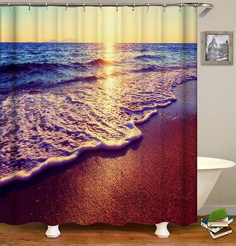 Chickw1 Rideau de Douche Rideaux de Salle de Bain, Imperméable Tissu Lavable Polyester 3D Vague de mer Impression Numérique Art Décorations Rideau avec 12 Crochets (Été,180x180cm)