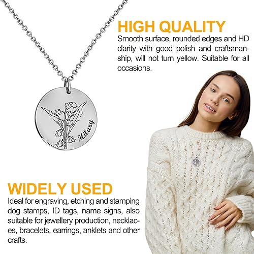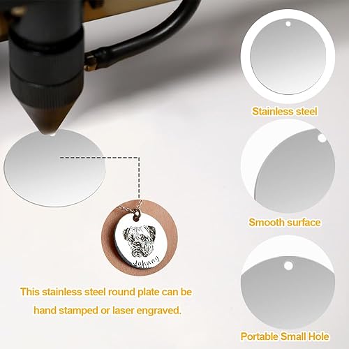 Sxutop 50 Pièces 25 mm Estampage Étiquette Pendentifs Métal, Plat Rond Breloques Étiquettes Vierges Charmes en Acier Inoxydable Stamping Tag pour Collier, Fabrication de Bijoux, Medaille Chien