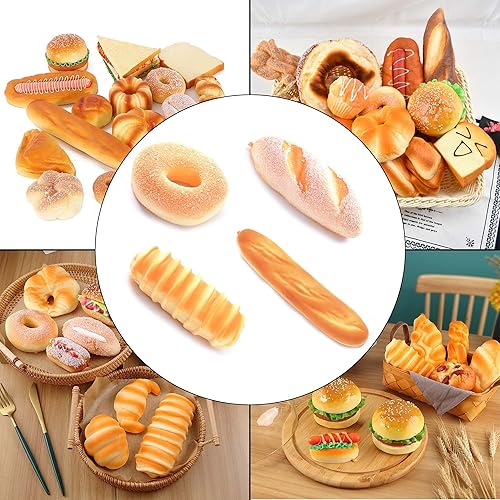 YANRU 4 pcs,Pain De Simulation,Simulation Pain,Artificielle Simulation De Pain,Baguette, Brioche à Beignet,pour DéCoration De Boulangerie/Affichage De FenêTre/DéCoration De FêTe/Accessoires Photo (1)