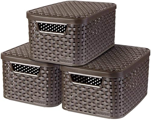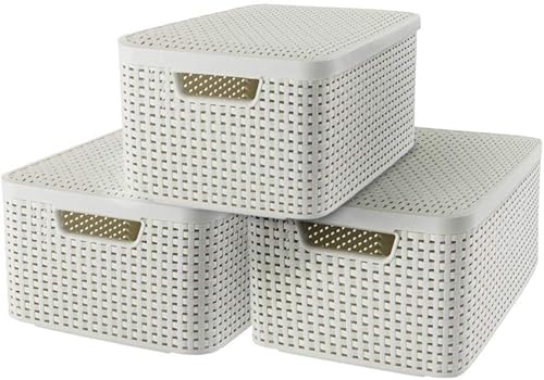 CURVER Lot 3 Boîtes de Rangement Décoratives Style 6L - Pour Ranger le Salon, la Chambre, la Salle de Bain ou le Bureau - 28,5 x 19,4 x 13 cm - Blanc