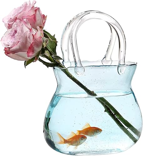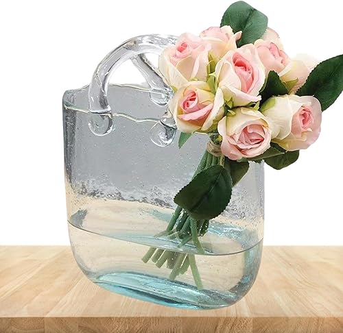 Vase en Verre soufflé à la Main avec Bulle, Vase à Fleurs en Forme de Sac à Main Unique pour centres de Table, décoration d'intérieur Moderne