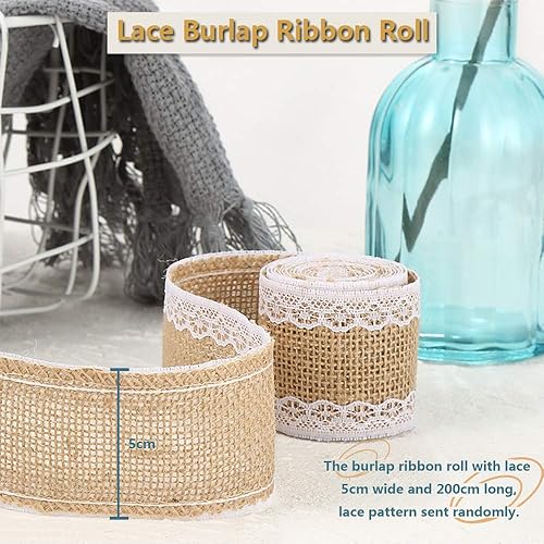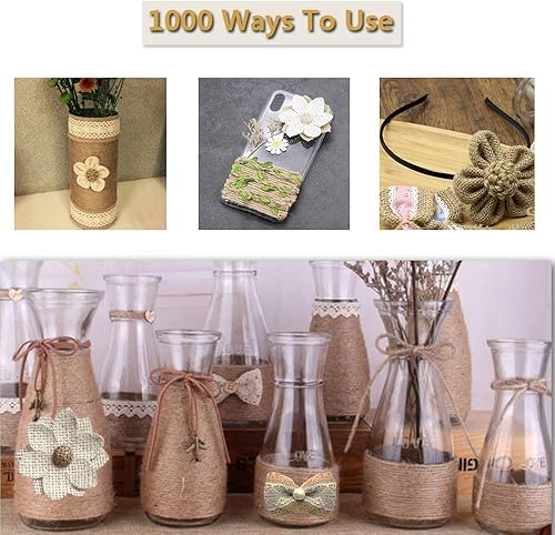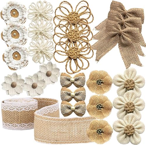 25 Pièces À La Main En Toile De Jute Naturelle Rose Fleurs Pour L'artisanat, Jute Ficelle De Jute Fleurs Et Perles Bow Décoration De Toile De Jute Rustique 8 Styles Avec 1 Rouleau De Ruban De Toile