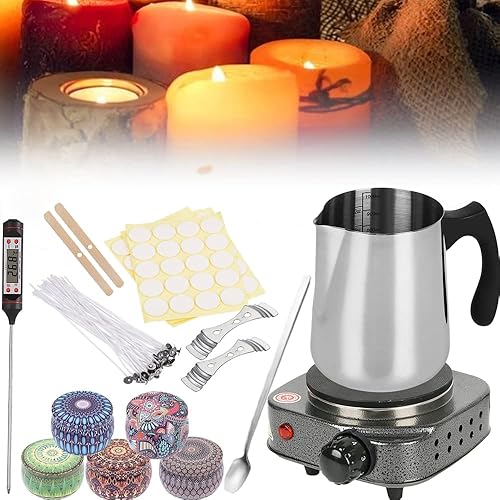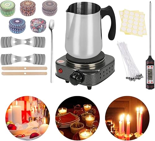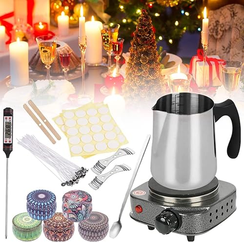 Treesunshine Kit de Fabrication de Bougie, DIY Bougies Coffret Cadeau de Noel, Ensemble Cadeau de Bougies Parfumées avec Pot de Fusion 1000ml,Plaque Chauffante 500 W Thermomètre Numérique