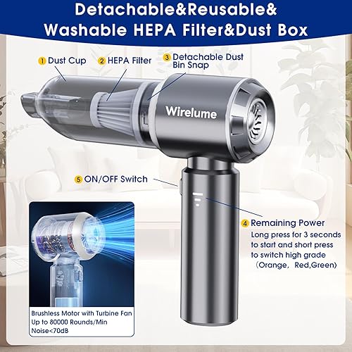 Wirelume aspirateur à Main sans Fil pour Voiture Puissant Aspiration cyclonique de 22 000 Pa Moteur sans balais Portable Rechargeable léger pour Poils d'animaux véhicule Maison