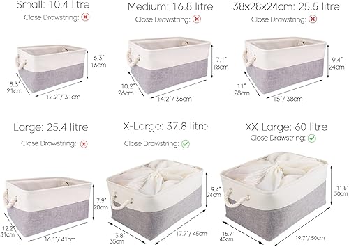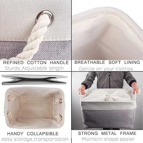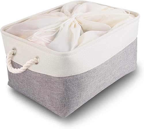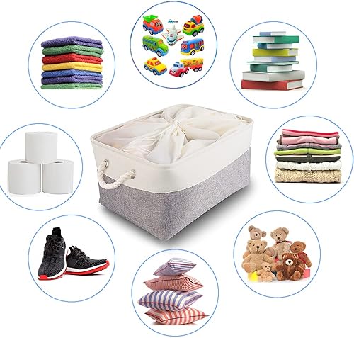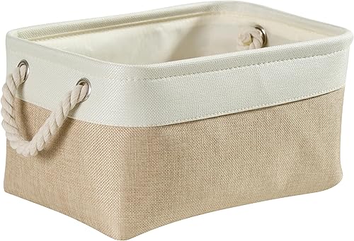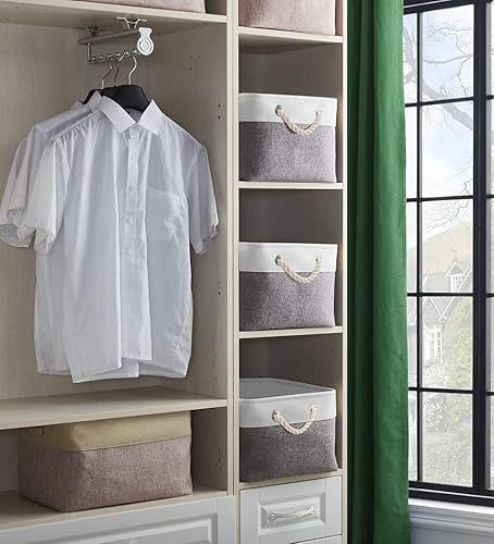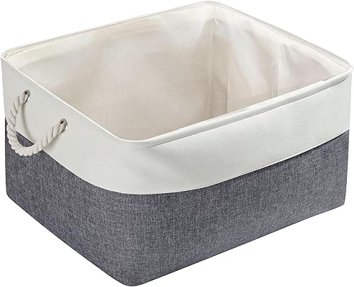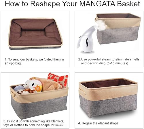 Mangata Boite de Rangement Tissu Grand, Panier Rangement rectangulaire Dressing avec poignée pour Jouets, Armoire (Pliable, Kaki Clair Blanc)