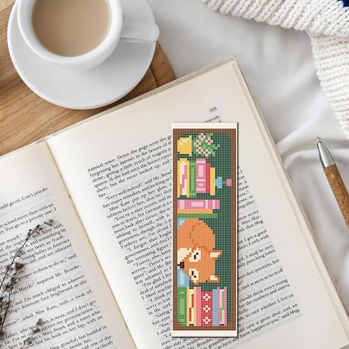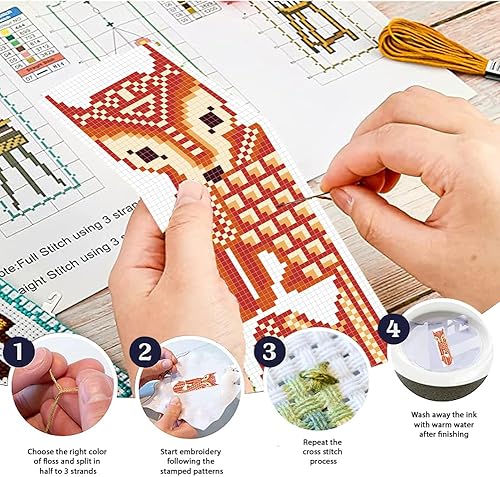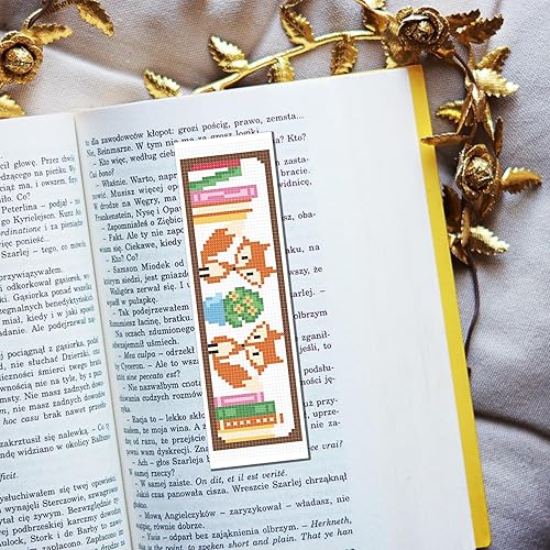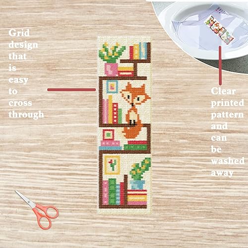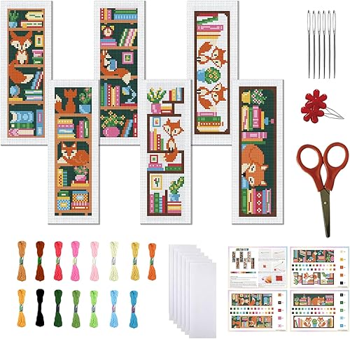FREEBLOSS 6 ensemble de Kits de Marque Pages au Point de Croix Motif de Bibliothèque Fox Kit de Broderie Estampé Marque Pages à Broder Marque Pages à Faire Soi Même Kits 8''X2.4''