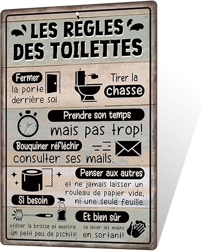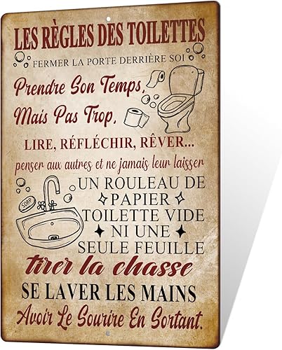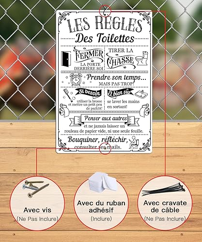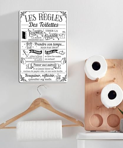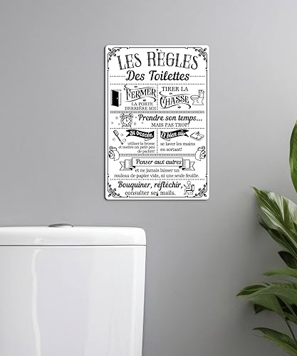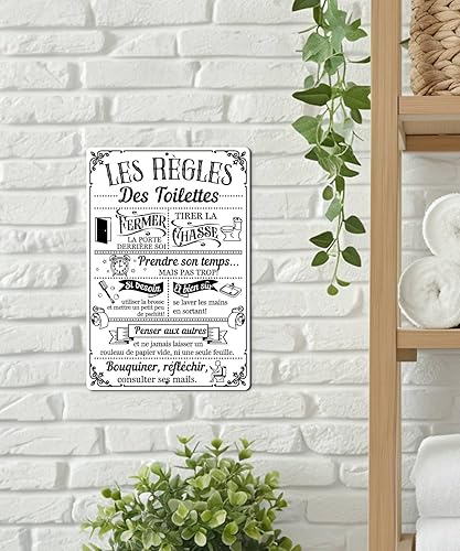 Putuo Decor Plaque Métallique Règles des Toilettes, Panneau Humour en Aluminium pour WC et Salle de Bain, 30x20 cm