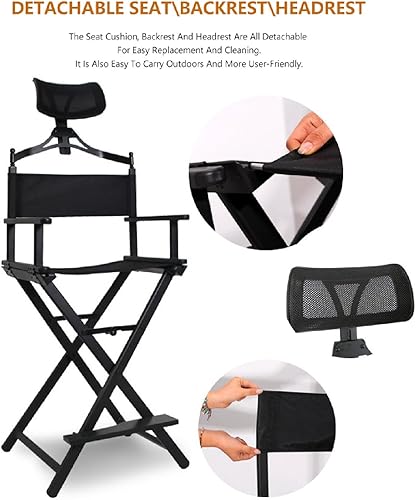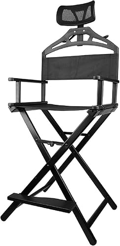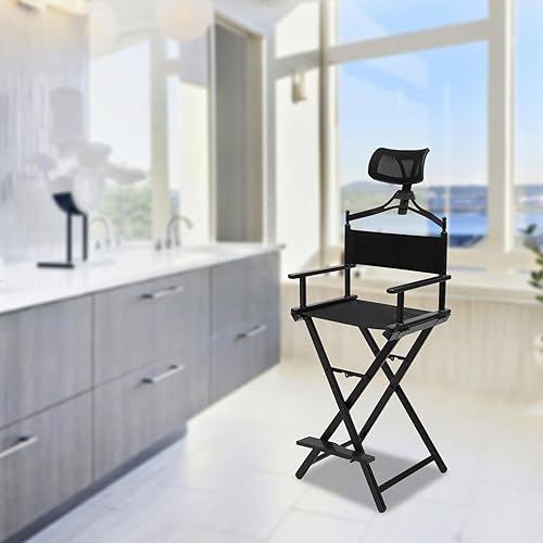 SiHmai Chaise De Tabouret De Maquilleur Pliable Extra Haute, Chaise De Réalisateur Haute Portable avec Appui-Tête, pour Camping, Vanité De Salon De Studio,Rose Gold