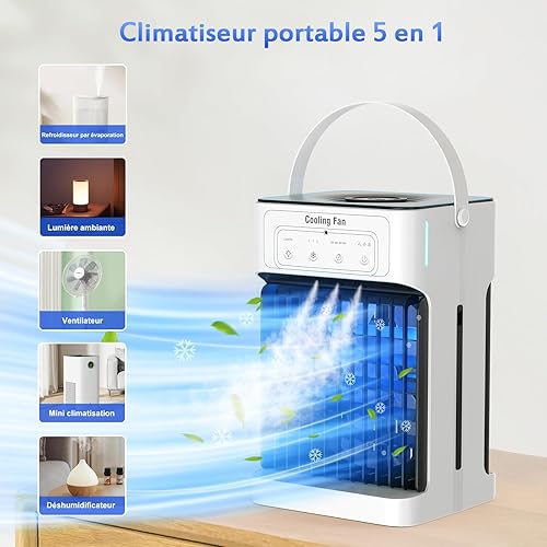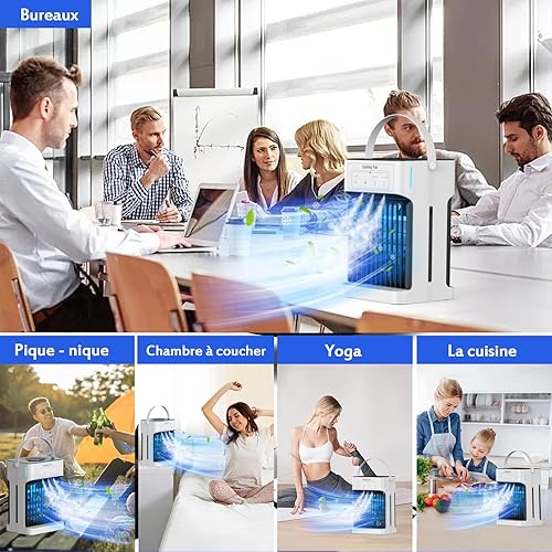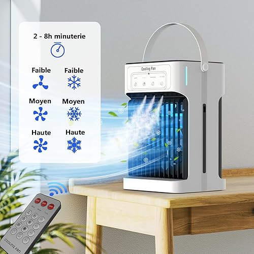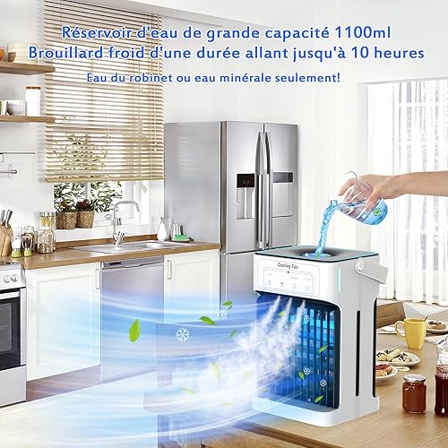 Climatiseur Mobile avec Télécommande, 1100 ML Double Moteur Rafraichisseur d'air avec 3 Vitesses & 3 Brumes, 2-8H Timer,USB &7 LED pour Chambre et Bureau