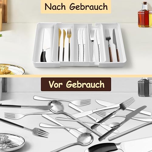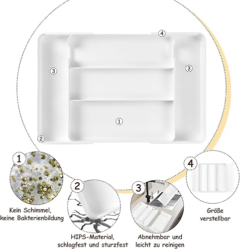 WUFANC Range Couverts Pour Tiroir, Range Couvert Tiroir De Taille Ajustable, RéSistant à L'Humidité, Facile à Ranger, Rangement Couverts Tiroir Cuisine Pour Organiser Couverts, Fourchettes, Blanc