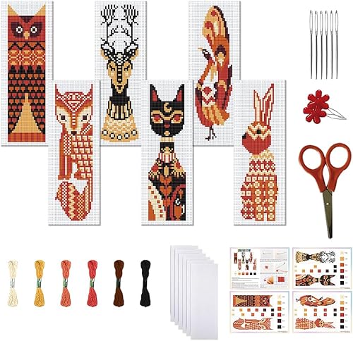 FREEBLOSS 6Pcs Kit de Signet au Point de Croix Signet de Point de Croix Estampé Kit de Point de Croix pour les Débutantskit Point de Croix Animaux Géométriques