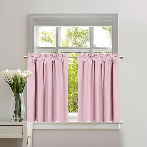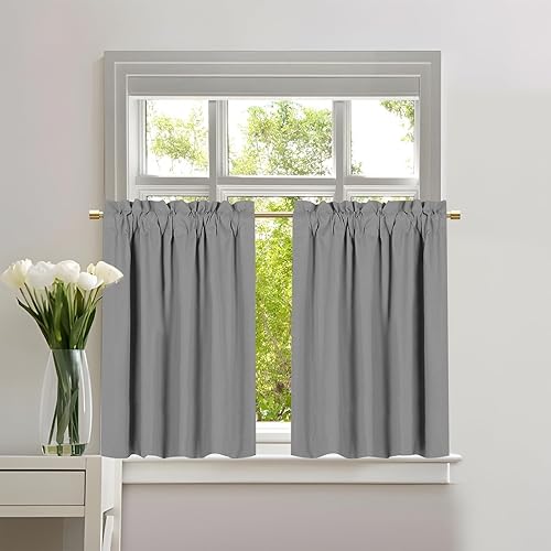 BTTO Rideau Occultant Court Passe Tringle, Lot de 2 Thermique Petit Rideau sous Evier, Moderne Decoration pour Petites Fenêtres de Cuisine, Porte Placard, Gris, L85 x H61cm