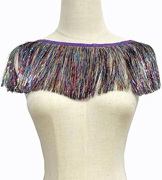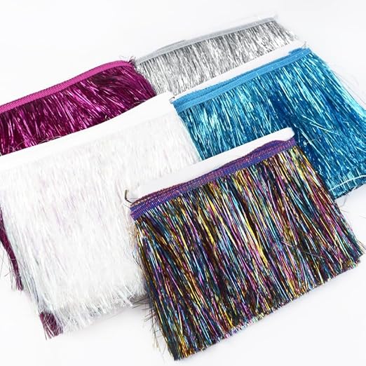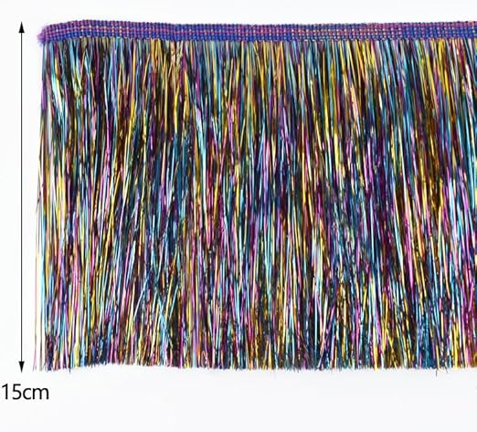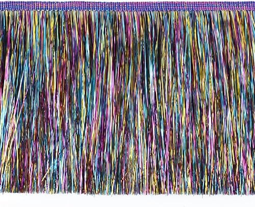 Yalulu 10 m de fil d'argent PET - Franges soyeuses - Franges dansantes - Bordure à franges coupées - Accessoire de couture - Multicolore