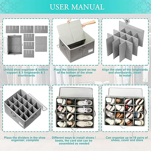 Bacs de rangement pour chaussures de placard | Organiseur de chaussures pliable | Organiseur de chaussures sous le lit | Organiseur de chaussures de placard avec housse transparente, support de