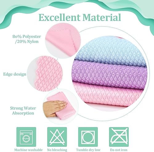 YiliYa Lot de 10 Chiffons de Nettoyage en Écailles de Poisson, Chiffon Microfibre Réutilisable 30x40 cm, pour la Salle de Bain Maison Cuisine Bureau Voiture Moto,Multicolore