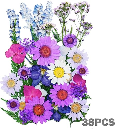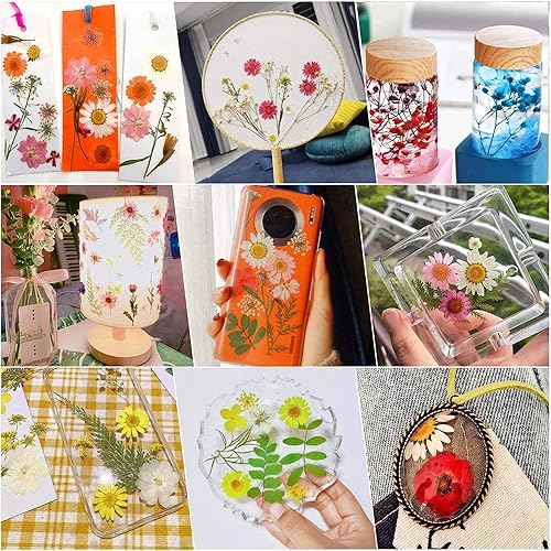 Cayway 160 PCS Fleurs Séchées Mélangées Kit avec Pince à Épiler et Ciseaux, Fleurs Pressées Séchées Naturelles pour L'artisanat d'art de Bricolage, Les Bijoux en Résine Epoxy