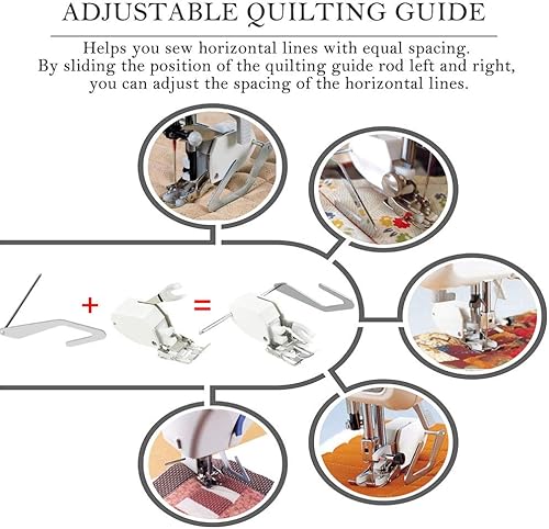 EMAGEREN Pied Presseur Pied de Biche Machine à Coudre Pied Double Entrainement Pied Presseur Surjeteuse avec Guide de Courtepointe Pied de Biche Surjeteuse Reglable pour Singer Brother Janome Toyota